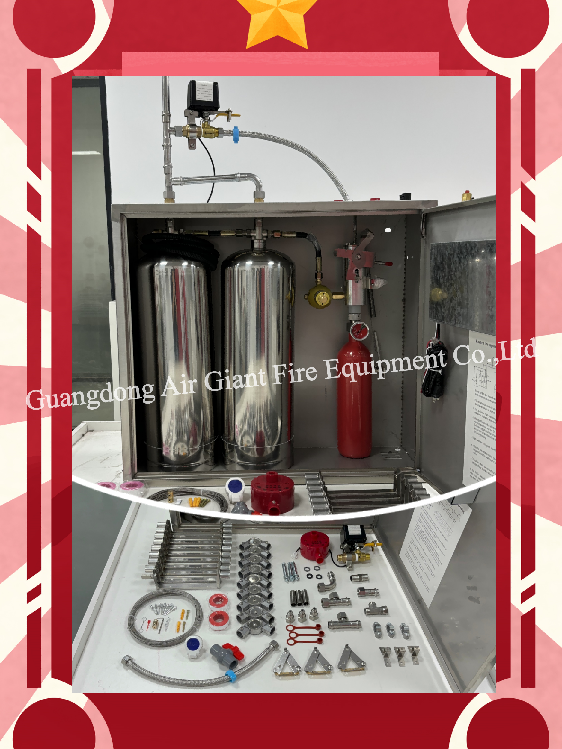 Dit apparaat kan 24 uur per dag automatisch monitoren, detecteren en activeren, met een korte bespuitingstijd van brandblussingsmiddel en snel blussen binnen 5 seconden.Tijdens brandblussenHet product wordt mechanisch gestart en heeft geen elektriciteit nodig. Om corrosie te voorkomen, zijn alle grondstoffen van roestvrij staal of koper.Wanneer geïnstalleerd en gebruiktDe installatie van het aantal en de plaats van de sproeiers is flexibel en voldoet aan de eisen van de specificaties.Het ontwerp en de installatie ter plaatse worden uitgevoerd op basis van het aantal openingen voor de kachel- milieuvriendelijk brandblusmiddel, gemakkelijk te reinigen en gemakkelijk voor dagelijkse reiniging.het brandblusapparaat is geïnstalleerd op de omringende muren van de beschermingszone, die de grondruimte van de beschermingszone niet inneemt.